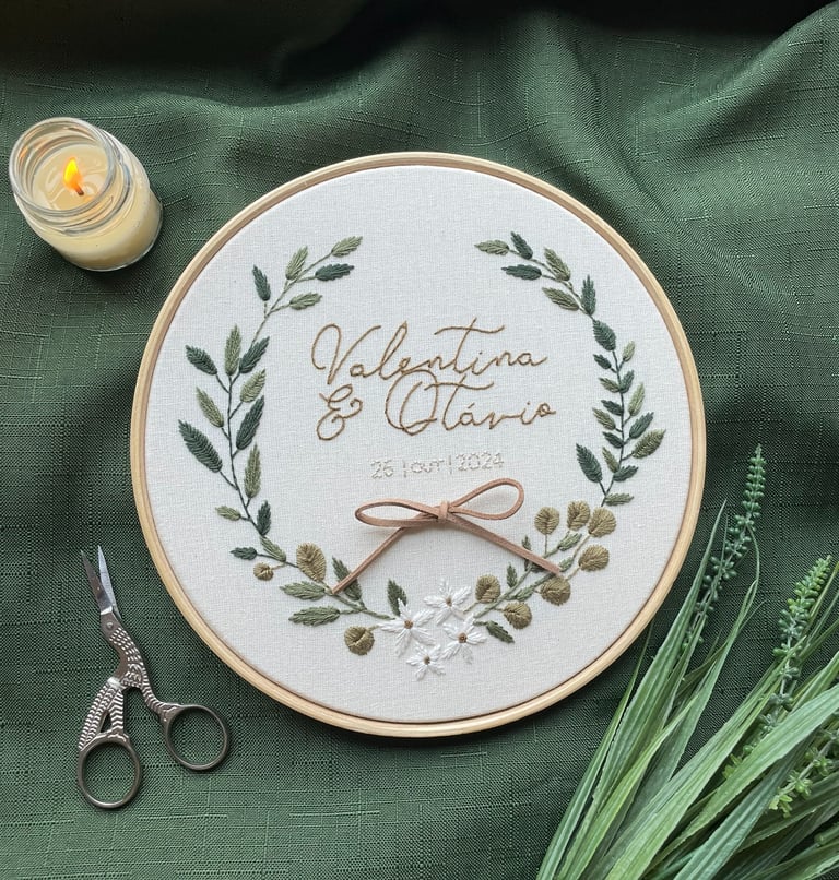 Mais que um enfeite, o porta maternidade bordado à mão é uma memória em forma de arte, uma lembrança eterna de um dos momentos mais especiais da sua vida.